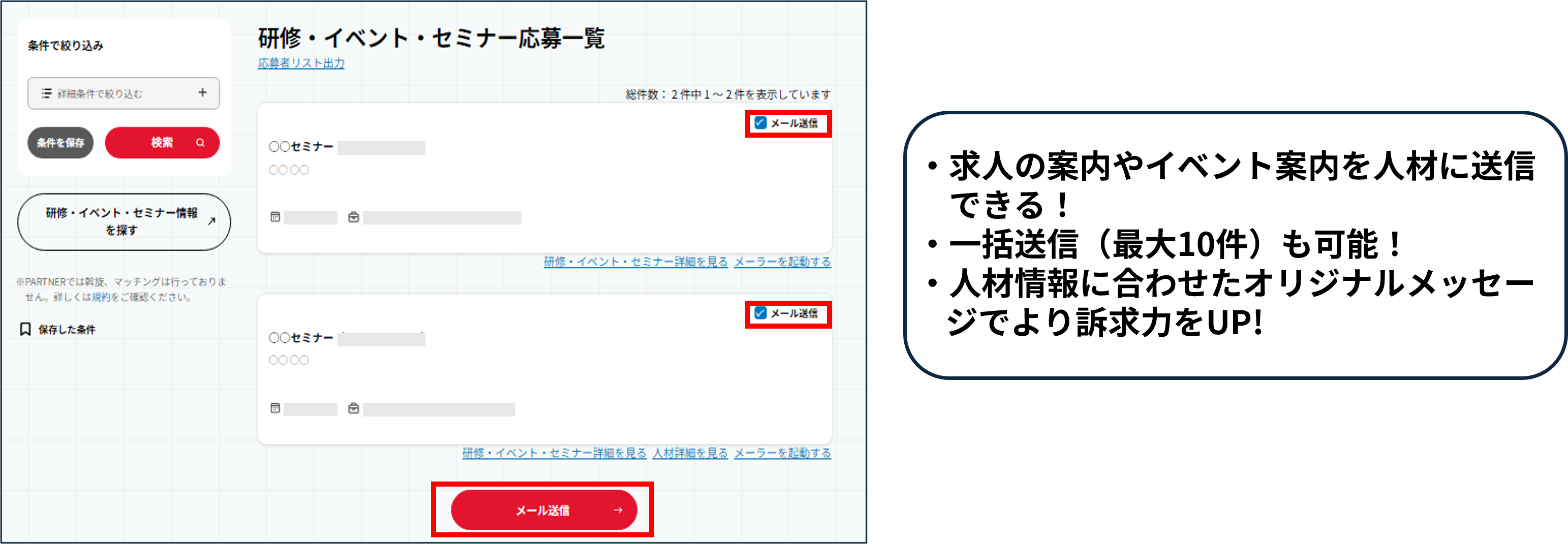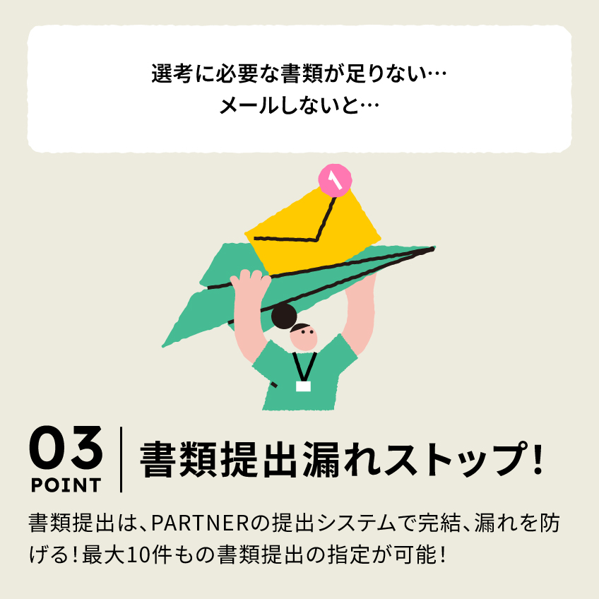 求人を見た人が、PARTNERサイトから直接応募できる仕組みです。採用に関連する一連の業務はすべてこのサイト上で完結できます。