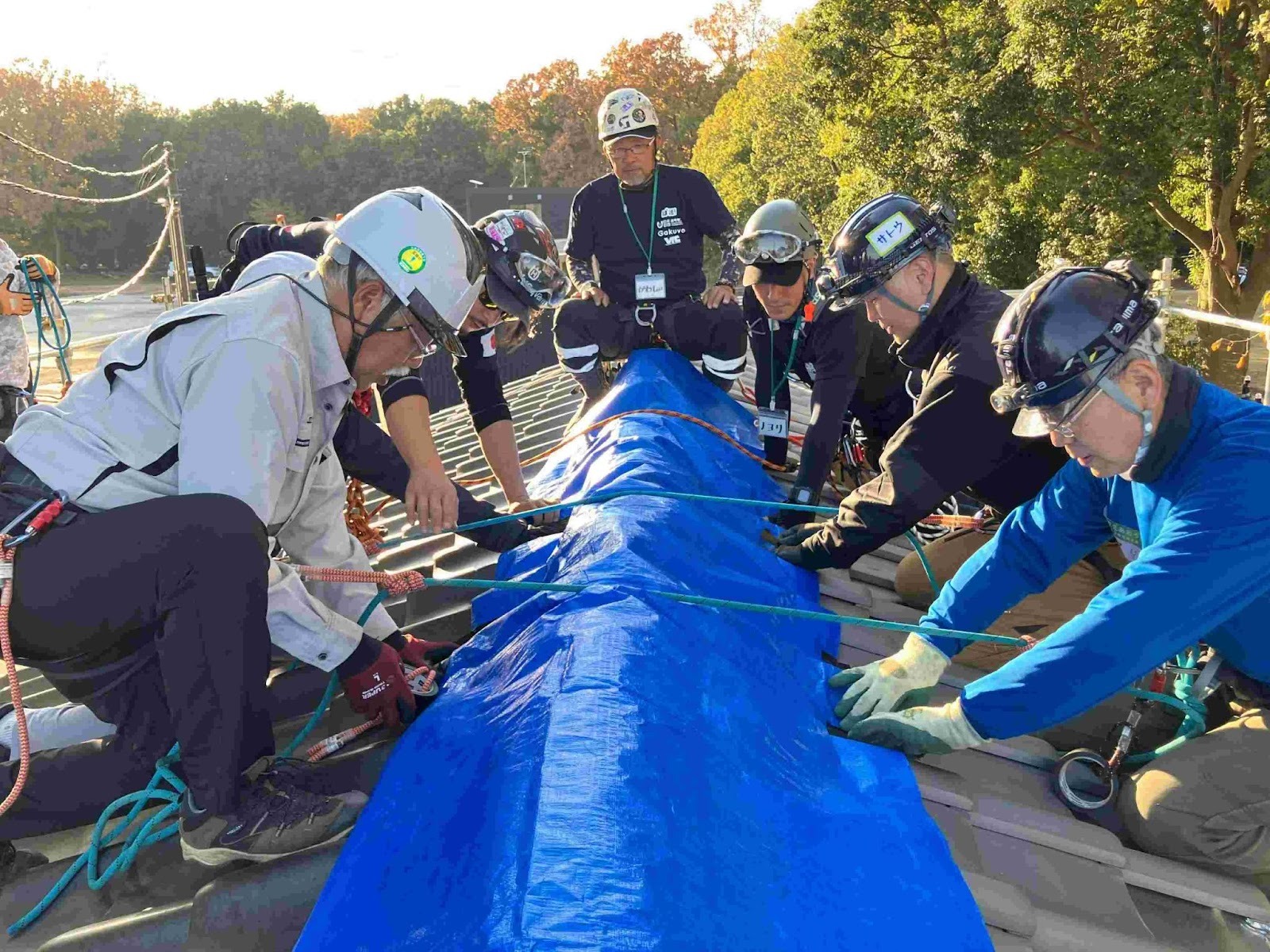 ・実寸大の家屋訓練棟を使用した屋根応急処置の実技 など